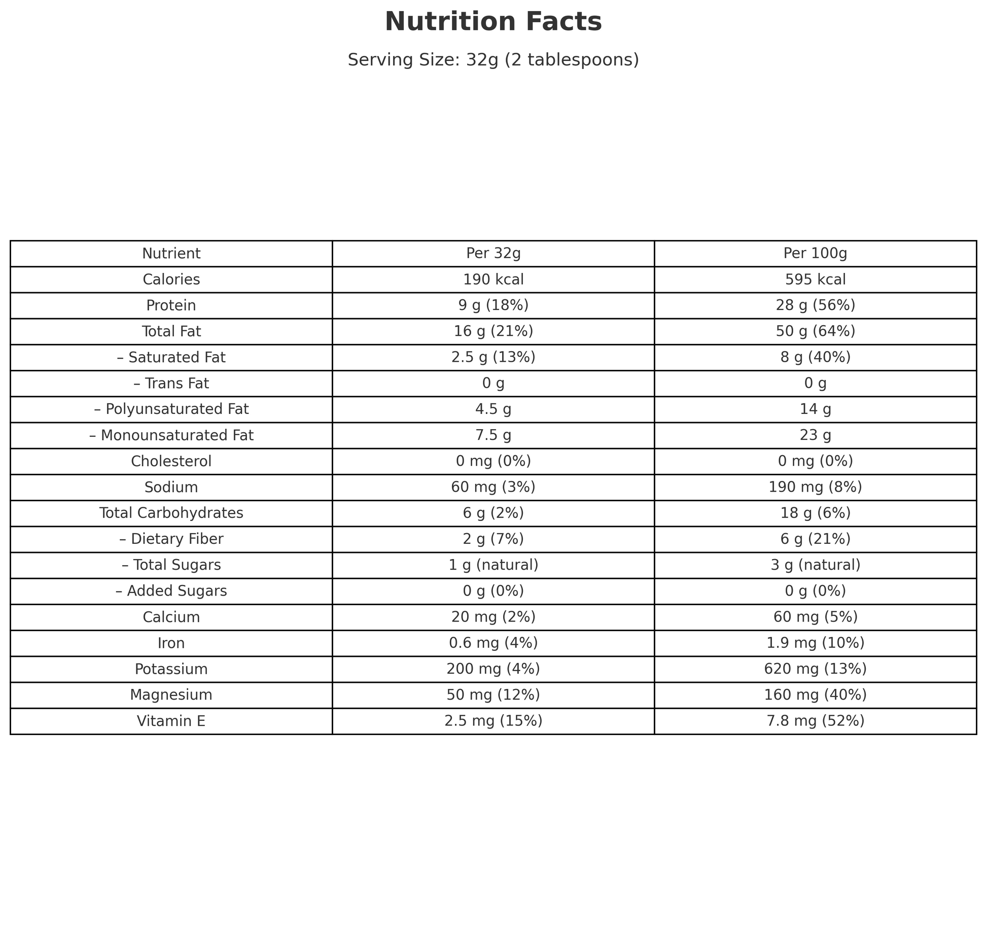 - High Protein – Packed with 28g of protein per 100g to fuel your day.